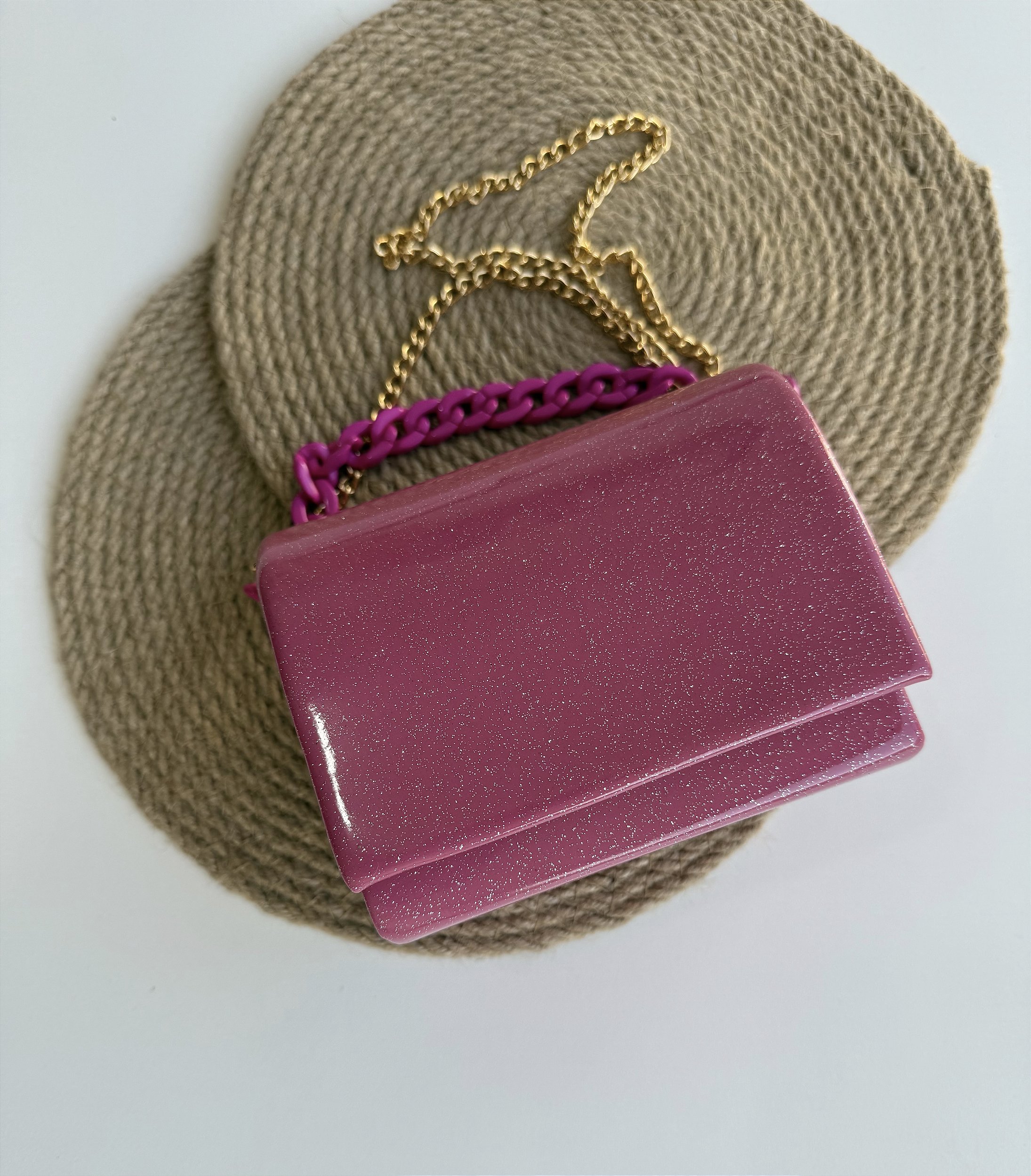 BOLSA EM PLASTICO DE ALTA QUALIDADE COM ALÇAS DOURADAS MODELO CORRENTE