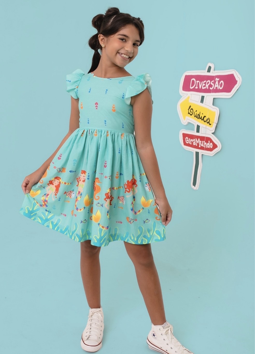 Vestido sereia vai encantar sua pequena e levar ela a um mundo lindo de imaginações , com estampas ludicas, tecido macio ,leve e fresquinho, designer moderno e confortável ele é ideal para usar no dia a dia ou em passeios.Viscose premium